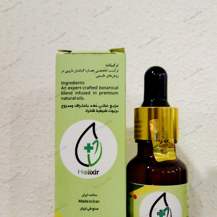 روغن هلیکسیر: یک روغن گیاهی و ارگانیک با فرمول نانو ذرات ترمیمی، که برای استفاده موضعی طراحی شده و دارای مزایای زیر است: