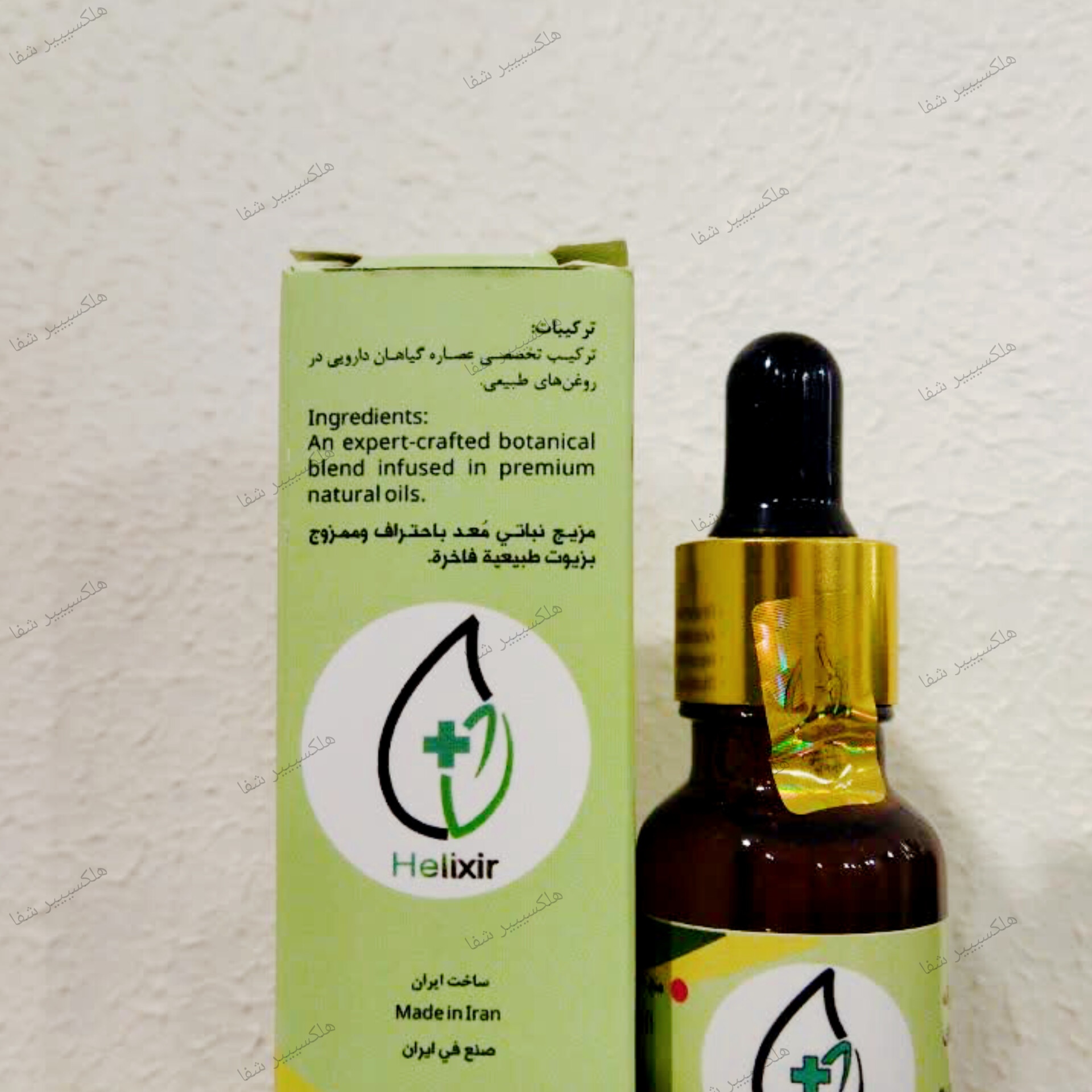 روغن هلیکسیر: یک روغن گیاهی و ارگانیک با فرمول نانو ذرات ترمیمی، که برای استفاده موضعی طراحی شده و دارای مزایای زیر است: